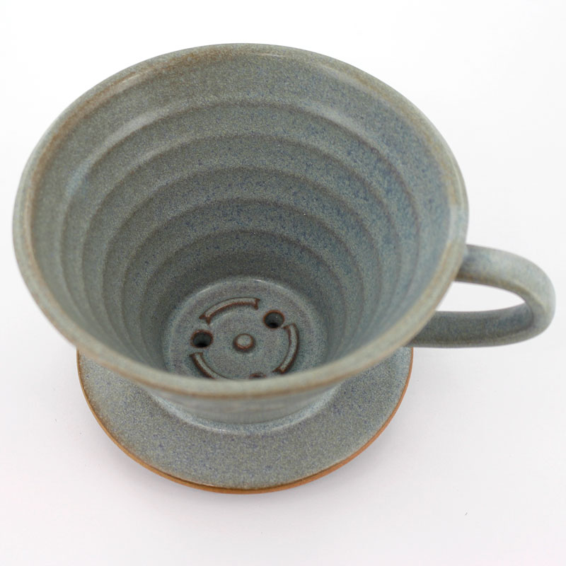 こちらは陶器製(美濃焼)のウェーブドリッパーです。色合いに特徴があり、砂型のようなザラっとした見た目ですが、釉薬がかかっているのでサラッとしています。