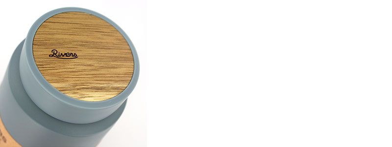 木製家具のような佇まいの真空ステンレスボトルです。 フタにアカシアの天然木がRIVERSのロゴ入りでさりげなく埋め込まれています。
