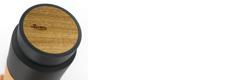 木製家具のような佇まいの真空ステンレスボトルです。 フタにアカシアの天然木がRIVERSのロゴ入りでさりげなく埋め込まれています。