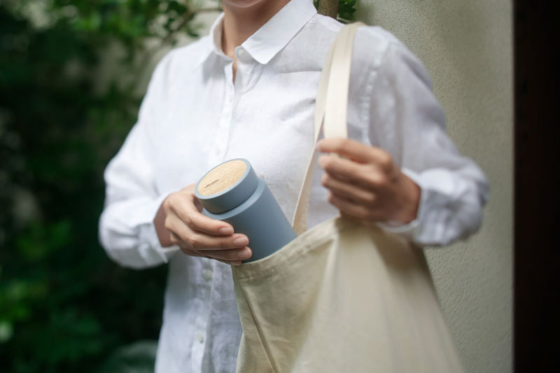 日常はもちろん、アクティビティや旅行にも連れて行けるように、耐久性機能性を落とさない限界まで軽量化しています(350:約195g、500:約233g)。ボディには持続可能なリサイクルステンレス材を使用。