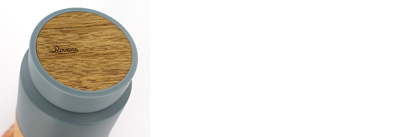 木製家具のような佇まいの真空ステンレスボトルです。 フタにアカシアの天然木がRIVERSのロゴ入りでさりげなく埋め込まれています。