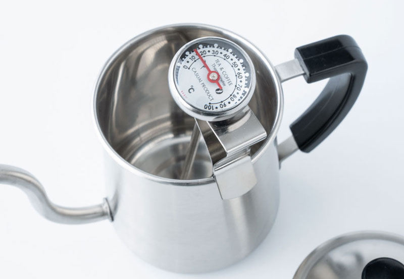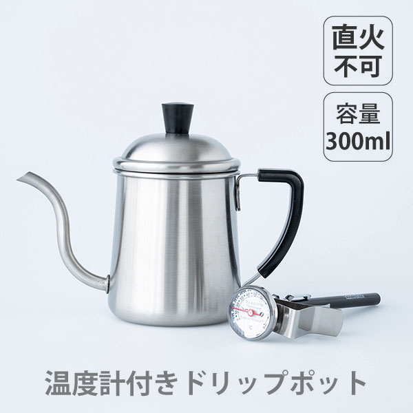 温度管理がしっかりできる温度計付きドリップポットです。 1杯ずつハンドドリップするのにちょうどいい300ml。 細い注ぎ口で湯量を調整しながら注げます。