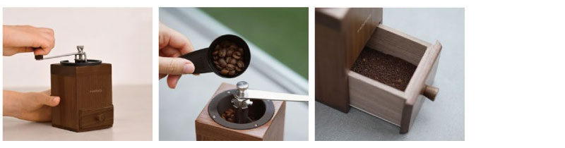 木のぬくもりを感じる、ハリオのセラミック臼のコーヒーミルです。 セラミック製の臼は、摩擦熱が発生しにくく、コーヒー豆の風味を引き出します。 お好みの粗さに調節し、挽きたてのコーヒーの香りを愉しむことができます。