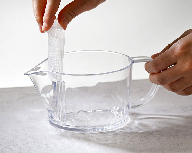 フィルターイン急須 晶に使われている素材のトライタンは、BPAフリー素材として安全性が 評価されているほか、ガラスのような透明感があります。また、軽くて割れにくく、高い耐熱性・衝撃性・高い透明性・においうつりしにくい特性があります。麻の葉は成長や繁栄を象徴し、古くから愛されてきたデザインです。 浮かび上がるように麻の葉が映え、お茶の美しい色合いとの調和を愉しめます。本体下部に水晶のような結晶柄を施しています。