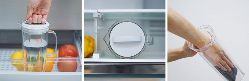 密閉できるフタで冷蔵庫のドアポケットだけでなく、横置きや野菜室での保存も可能です。 底面に向かってスクエア型になっており、転がりにくい形状です。