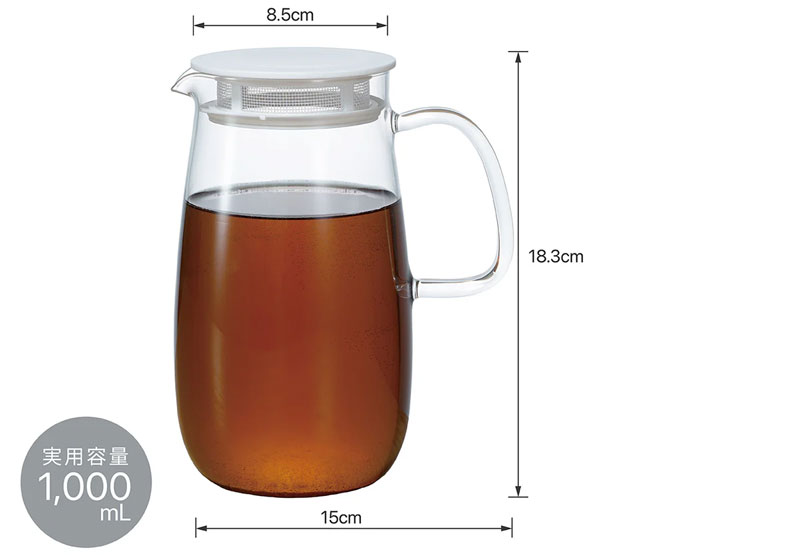 材質:本体:耐熱ガラス「HARIO Glass」、フタ・フィルター:ポリプロピレン、パッキン:シリコーンゴム