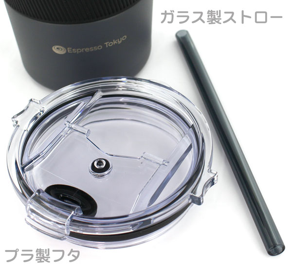 付属品:本体、プラスチック蓋、ガラス製ストロー