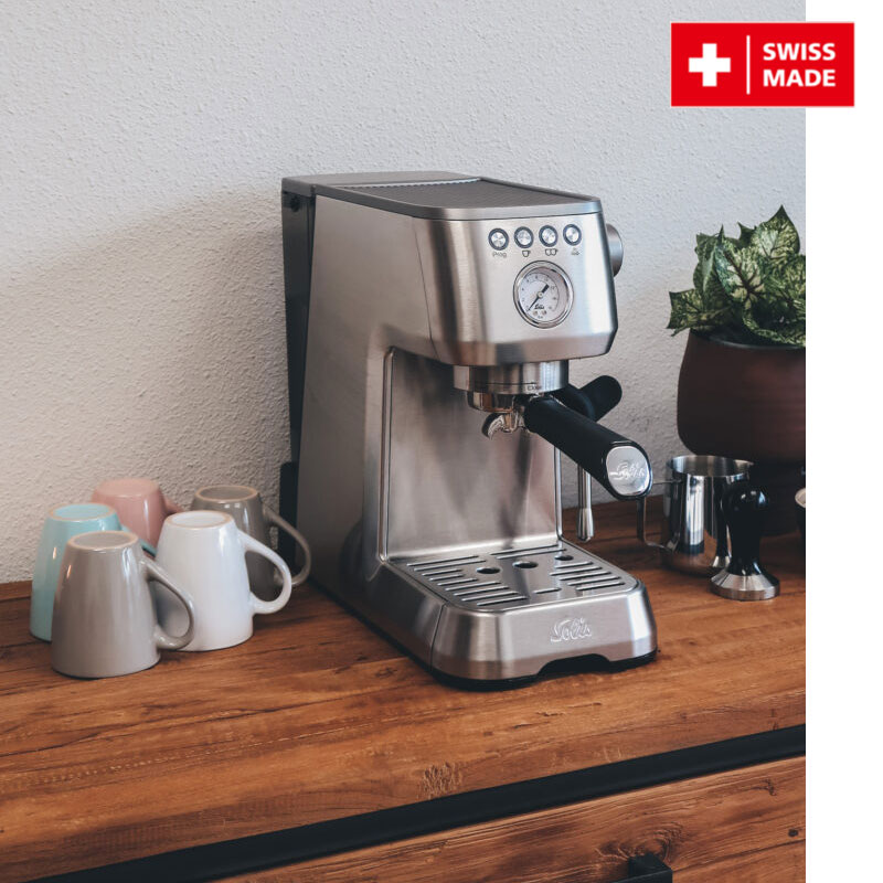 スイス発、ソリスの家庭用エスプレッソマシン・バリスタパーフェクタプラスで、コーヒー豆のおいしさを最大限に引き出し、極上のエスプレッソを味わいましょう。3種類のフィルターと、抽出時の圧力を確認できるナノメーターで、初めてエスプレッソを淹れる方から、自分好みのエスプレッソを追求したい方まで、自分に合ったエスプレッソを存分に楽しむことができます。もちろんスチーム機能も装備しているので、付属のミルクジャグでラテやカプチーノも作ることが出来ます。