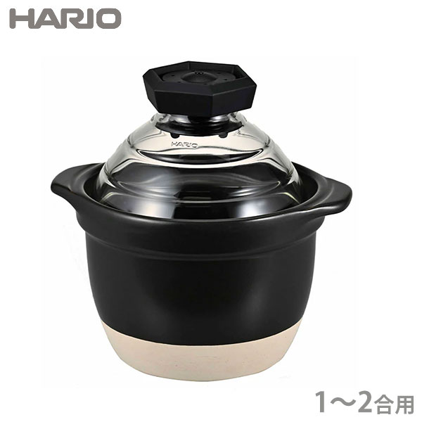 ハリオ フタがガラスのご飯釜 1〜2合用 GNR-150-B-W 送料無料