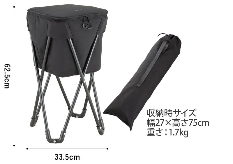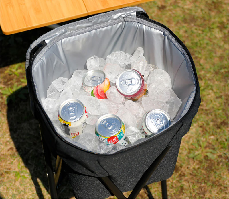 収納力と保冷性能に加え、スタンド付きで。いきなりドリンクスタンドに変身! 日帰りレジャーから泊まりキャンプまで幅広く活躍してくれそうです。