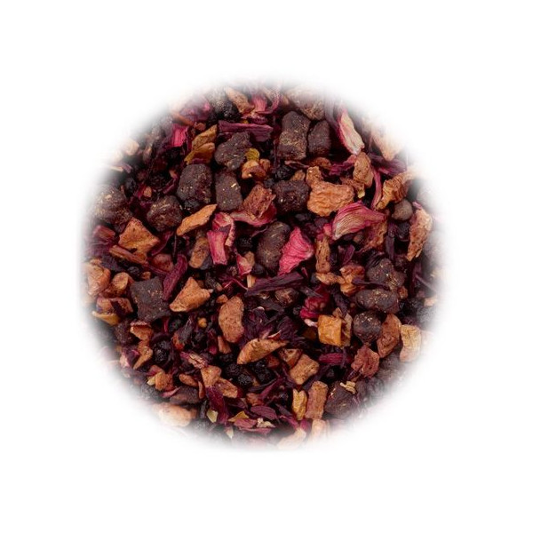 完熟ピーチとハイビスカスのブレンドで、赤ワインのような深い色合い。カラメルを想わせる芳ばしい香りがアクセント。