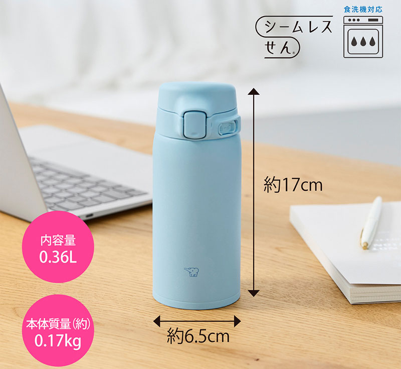 象印 ステンレスマグ 360ml パウダーブルー SU-BA36AM ワンタッチ シームレスせん
