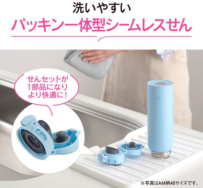 せんとパッキンがひとつになった「シームレスせん」なら、洗うパーツはふたと本体の2点だけ! パッキンのつけ忘れによる水漏れやなくす心配もありません。