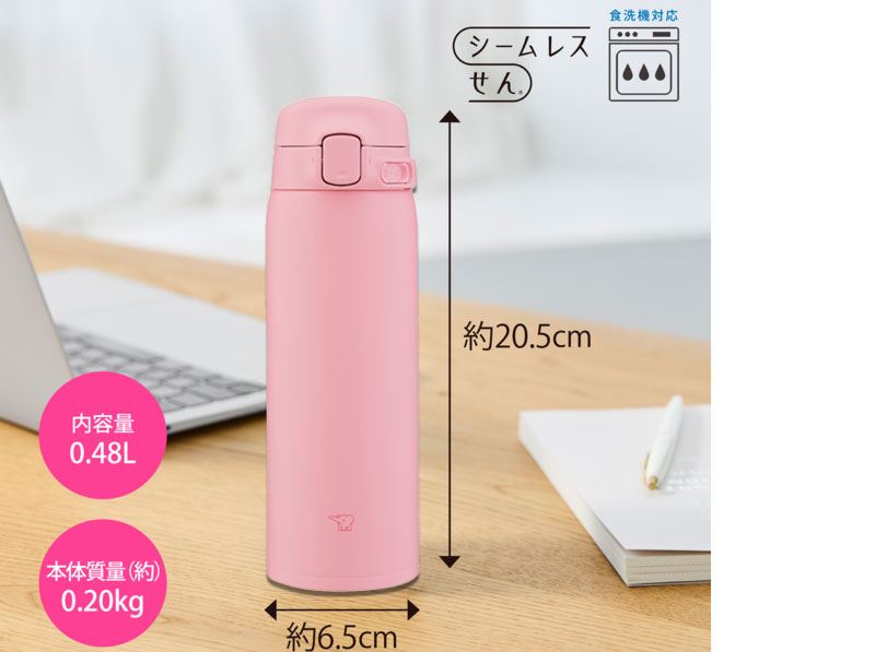 象印 ステンレスマグ 480ml ブルームピンク SU-BA48PM ワンタッチ シームレスせん