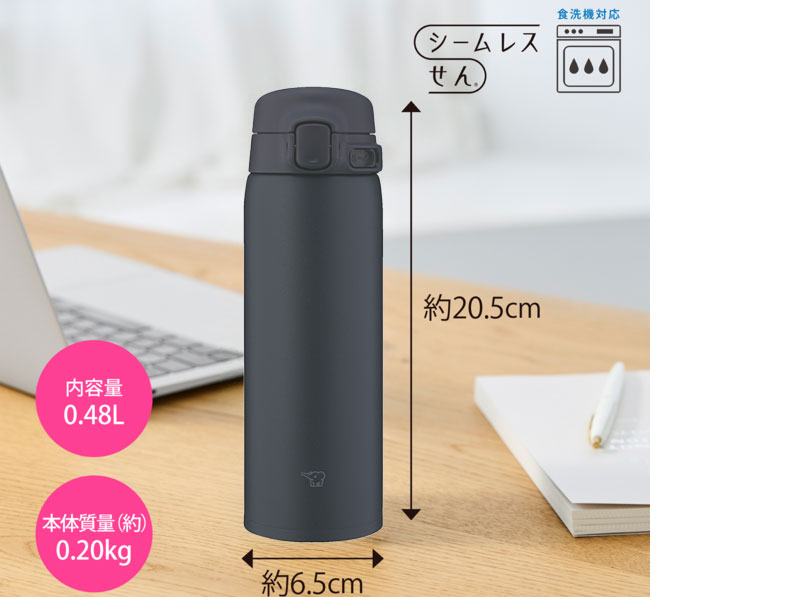 象印 ステンレスマグ 480ml ミッドナイトブラック SU-BA48BM ワンタッチ シームレスせん
