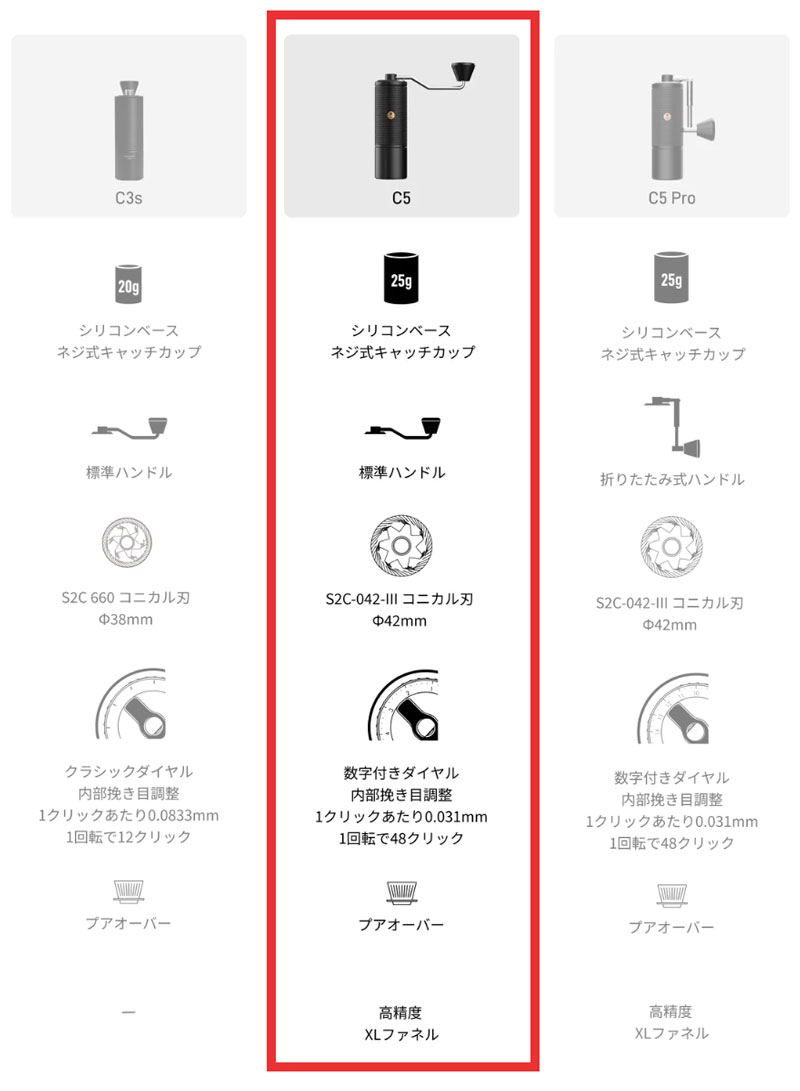 タイムモアの新型手挽きミル C5