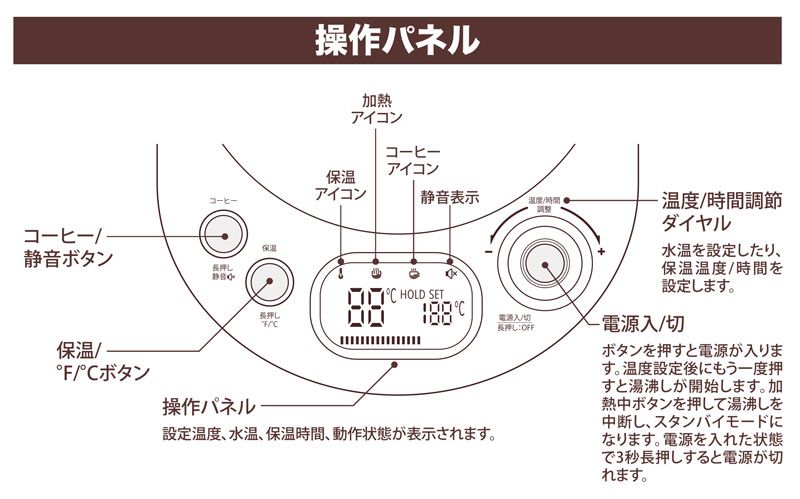 ・沸騰までの過程もひと目でわかるLEDディスプレイ付き