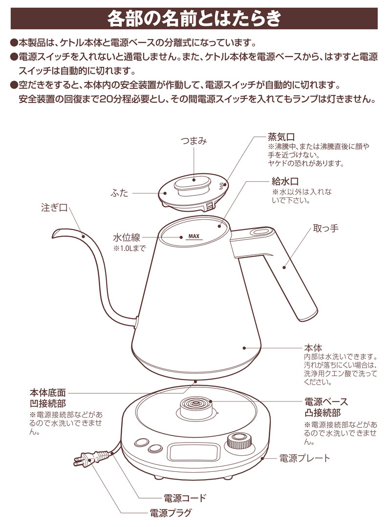 ・水が入っていないと自動でOFF、空焚き防止機能付き