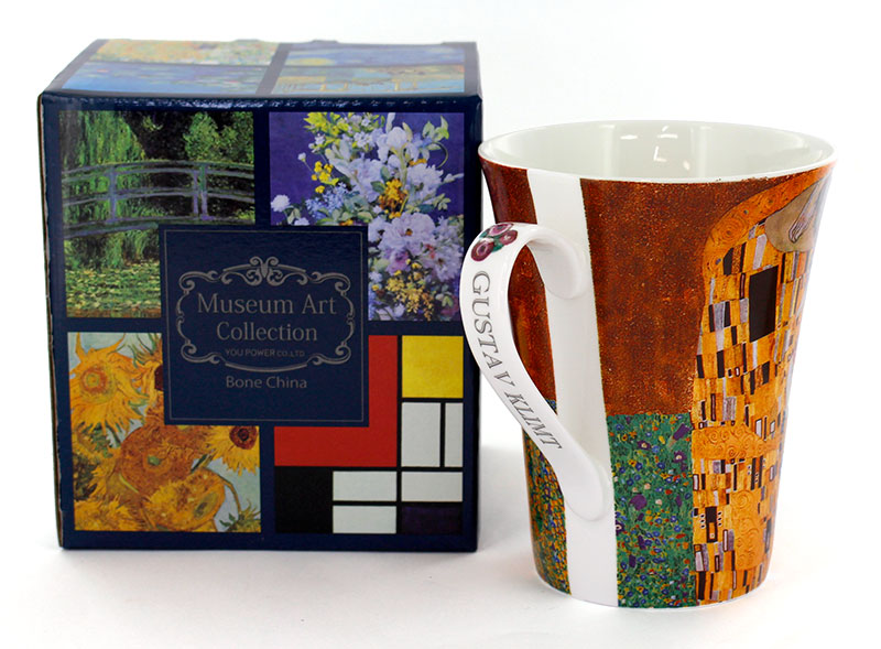 ゴッホやモネなど、名画の世界をそのまま閉じ込めたマグカップです。 持ち手の部分には絵画からのモチーフのワンポイントと作家名の英文字が入っています。