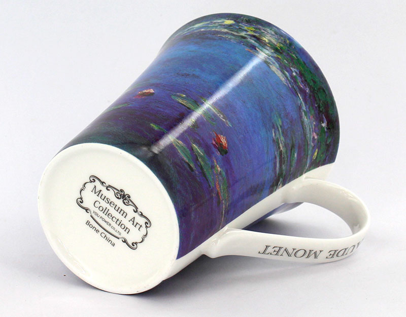 ゴッホやモネなど、名画の世界をそのまま閉じ込めたマグカップです。 持ち手の部分には絵画からのモチーフのワンポイントと作家名の英文字が入っています。