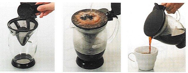 ドリップしたあとはそのままふたを閉めて、カップに注ぐことができます。