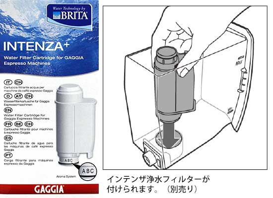 浄水フィルターカートリッジを使用すると、コーヒーマシン内部に水垢、スケール(石灰成分)が付きにくくなり、Saeco(サエコ) GAGIA(ガジア)エスプレッソコーヒーマシンの耐久年数が長くなります。 また独自のINTENZAアロマシステムが、今お使いの水に適した浄水能力を発揮して、コーヒーの味と香りをしっかりと引き立たせます。