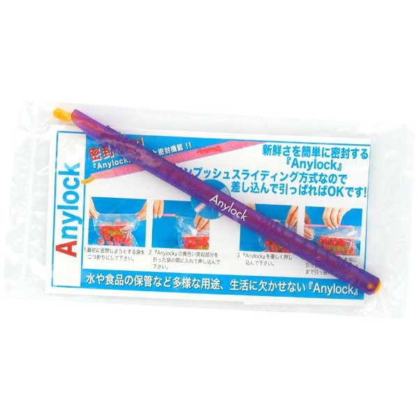 2:Anylockの黄色い部分を袋の間に入れて押し込みます。