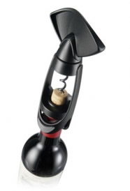 | 3箇所の特殊ラバーがボトルをしっかり固定するので、誰がやってもスクリューがコルクの真上から入り、同じ方向に回し続けるだけで、力をいれずに簡単に失敗なく抜けます。 口を開けた魚が泳いでいるように見えるデザインもおしゃれ。 |
