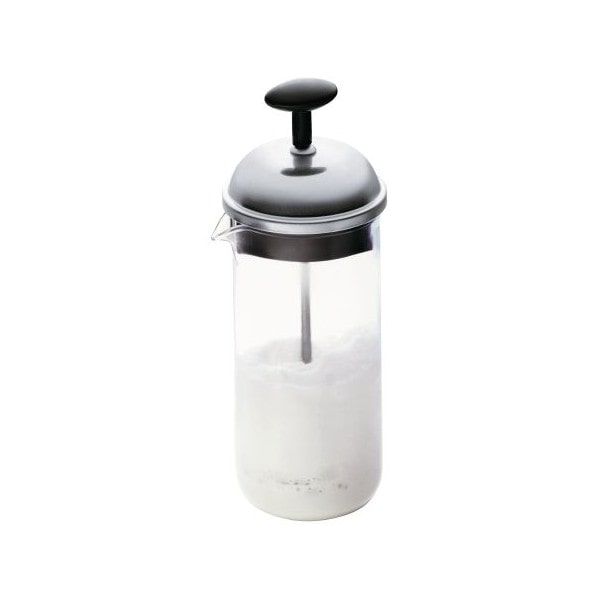 温めたミルクをいれ、プランジャーを上下に動かし、数秒おいておくだけで、フワフワのミルクが出来上がります。
