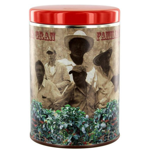 コロンビアは南米でも有数のコーヒー生産国で「ファン・バルデス」などの有名キャラクターがいますが今回は珈琲を生産する方々にスポットをあて映画のポスターのようなデザインに仕上げました。また熟した実が成る珈琲の木を360℃配置することによって雰囲気を出す工夫をしています。表題は「コロンビアの珈琲生産組合」=「家族」といった意味です。