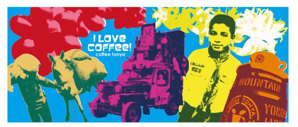 コーヒーにかかわる楽しい画像を昔懐かしい原色のポップアートで表現しました。コーヒー好きの皆様の心を楽しく彩ることができれば幸いです。