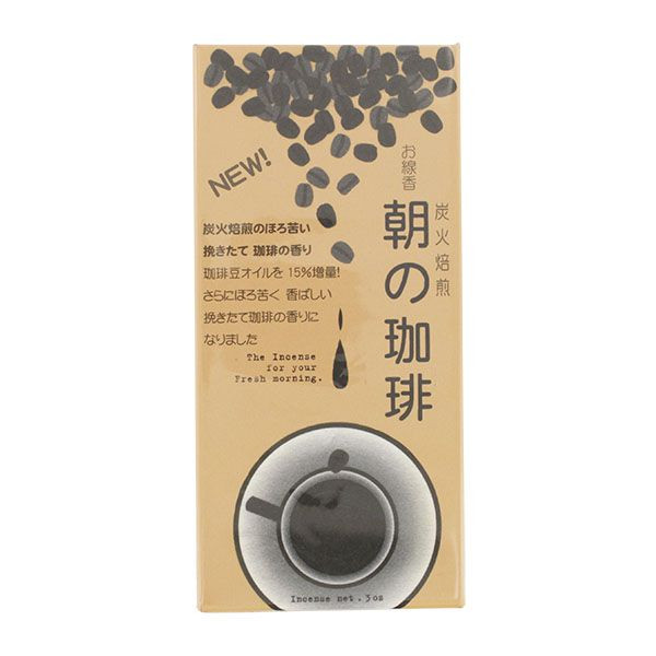 空気洗浄のお線香 炭火焙煎「朝の珈琲」珈琲豆オイルを15%増量!さらにほろ苦く香ばしい、挽きたての珈琲の香りを作りました。毎日お使いいただける、温かみのある香りで健やかな時間をお過ごしください。