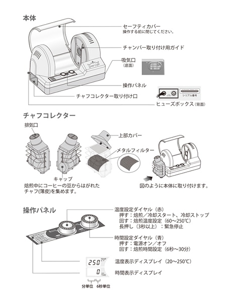 焙煎方式: 間接熱風方式(6秒〜30分/6秒単位)