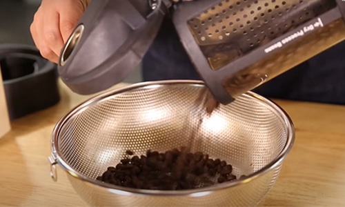 冷却運転が終了しチャンバーが止まったらコーヒー豆をザル等に広げ、しっかり冷まします。