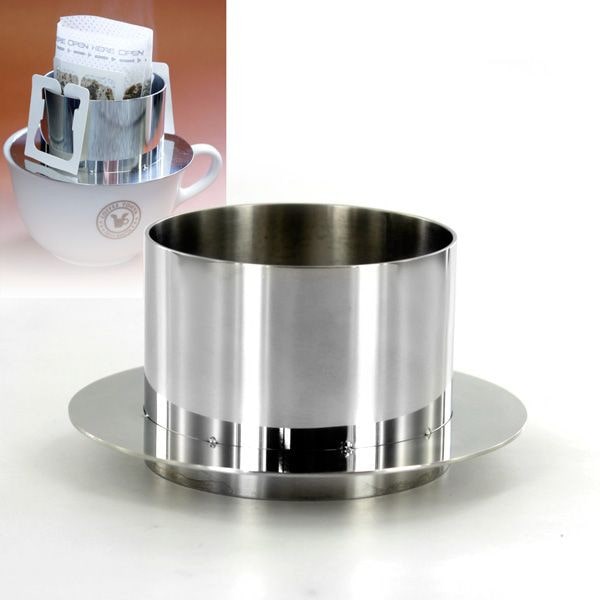 ●そこでオススメしたいのが、このドリップバッグ用スタンドです。ステンレス製でシンプルな構造で気になるお湯の問題を解決! カップによっては不安定に感じる状況も同時に解決してくれます。