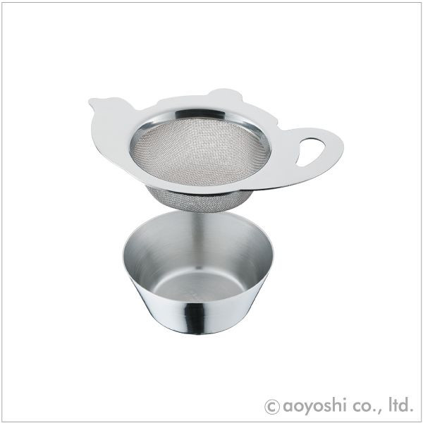 ティーポット型のティーストレーナーと受け皿のセットです。18-8ステンレス製なのでお手入れもしやすく、清潔に保てます。気軽に使えるので日常のティータイムに気兼ねなくお使いいただけます。食器洗浄機の使用もOK。