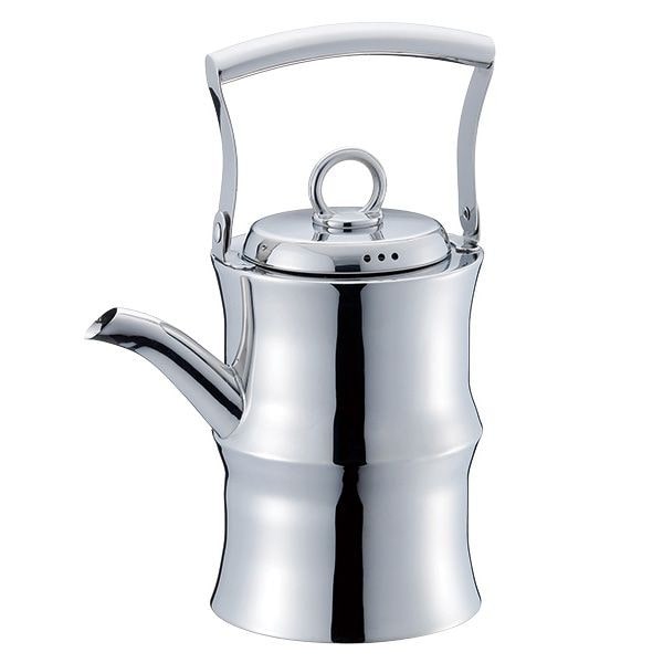 竹をモチーフにしたオールステンレスのスタイリッシュなポットです。直火にかけられるので、お茶の煮出しにも使えます。目詰まりしにくく歪みにくいパンチングメッシュストレーナー付き。