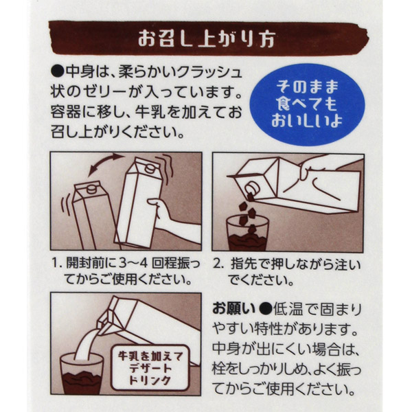 ミルクと割ってかき混ぜれば本格ゼリードリンクのできあがり。