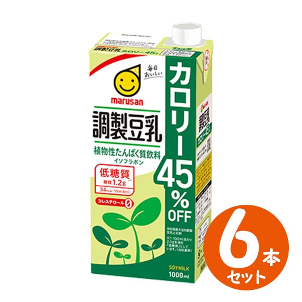 標準的な調整豆乳に比べ、カロリーを45%オフにしました。 たっぷり1リットル入ったお徳用ファミリーサイズです。