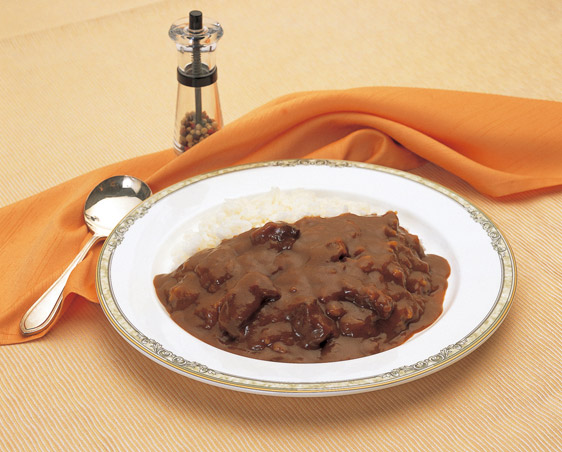 スパイスのブレンドに工夫を凝らして辛味を抑え香りをぐっと引き出しました。 マイルドな口あたりの本格的なビーフカレーです。(中辛)