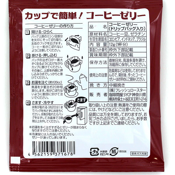 ドリップバッグタイプなので、カップに引っ掛け、約120ccお湯を注いで、冷ませばかんたんに出来上がります!