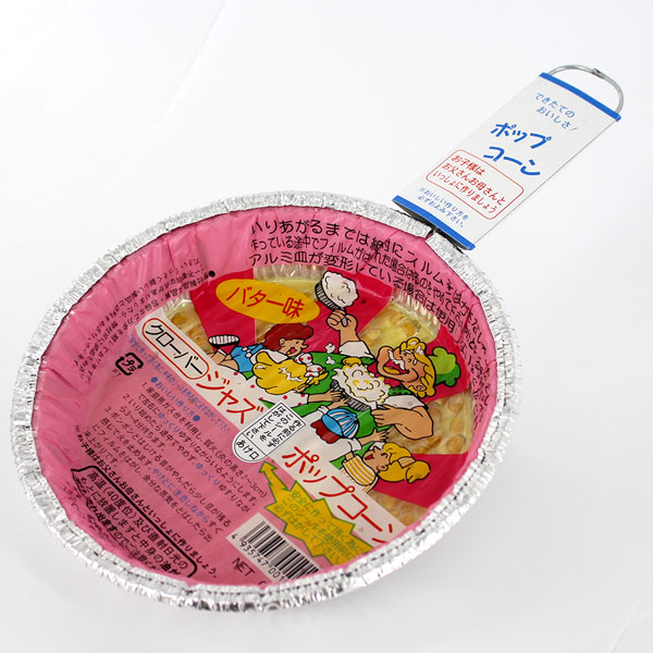 昔懐かしいフライパン形のアルミ皿のガス用ポップコーンです。