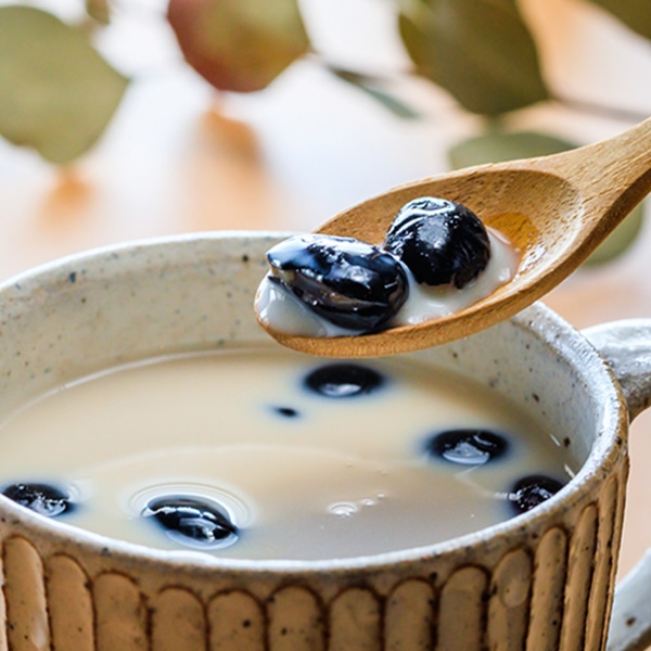 北海道の香ばしく焙煎した黒豆が丸ごと。粉末にした黒豆きな粉に乳成分を配合しました。ほんのり甘く感じるのは体に優しいてんさい糖。イソフラボンに加え良質なタンパク質「低分子コラーゲンペプチド」とカルシウムが入ったやさしいラテです。