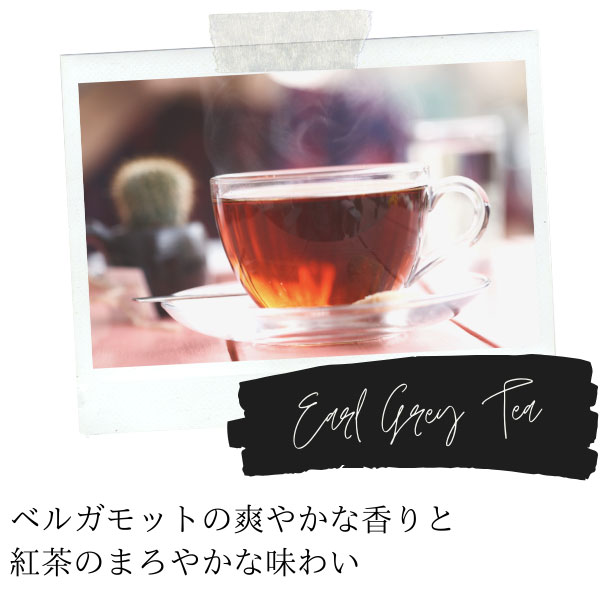 柑橘系ベルガモットの爽やかな香りと紅茶のまろやかさが調和したフレーバーティー。 ホットでもアイスでもリーフティー特有の豊かな香りをお楽しみいただけます。