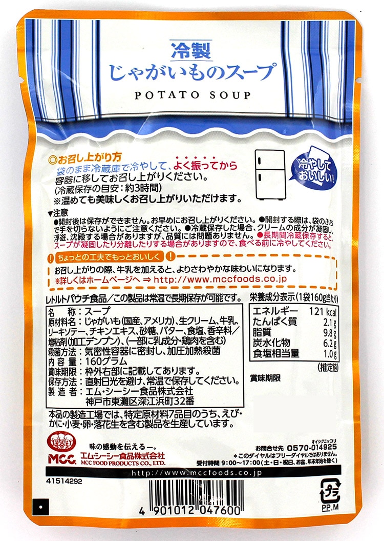 厳選したじゃがいもを使用し、素材の味をいかして丁寧に仕上げた冷製スープです。