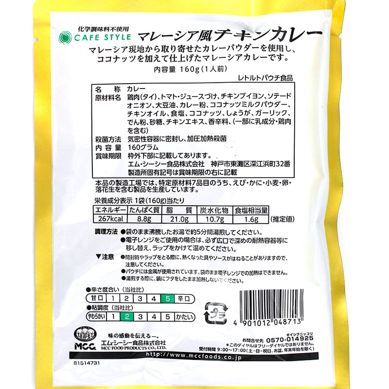 MCC CAFE STYLE マレーシア風チキンカレー 160g エムシーシー カフェスタイル 業務用レトルトカレー