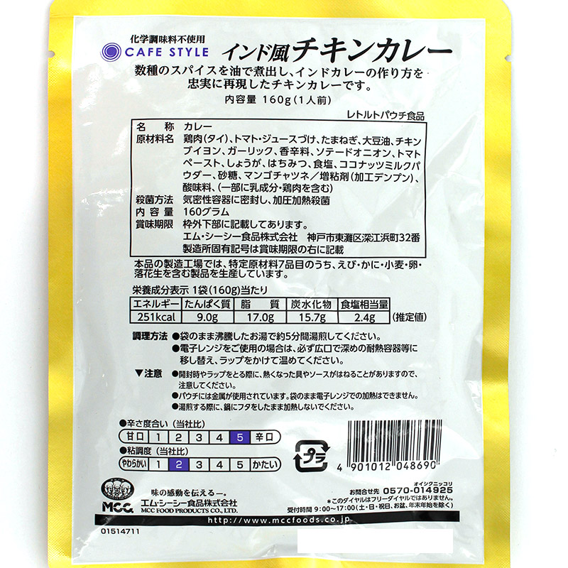 ![[セット] MCC CAFE STYLE カシミール風チキンカレー 160g×10袋セット エムシーシー カフェスタイル 業務用レトルトカレー](/img/goods/S/45845-1.jpg)