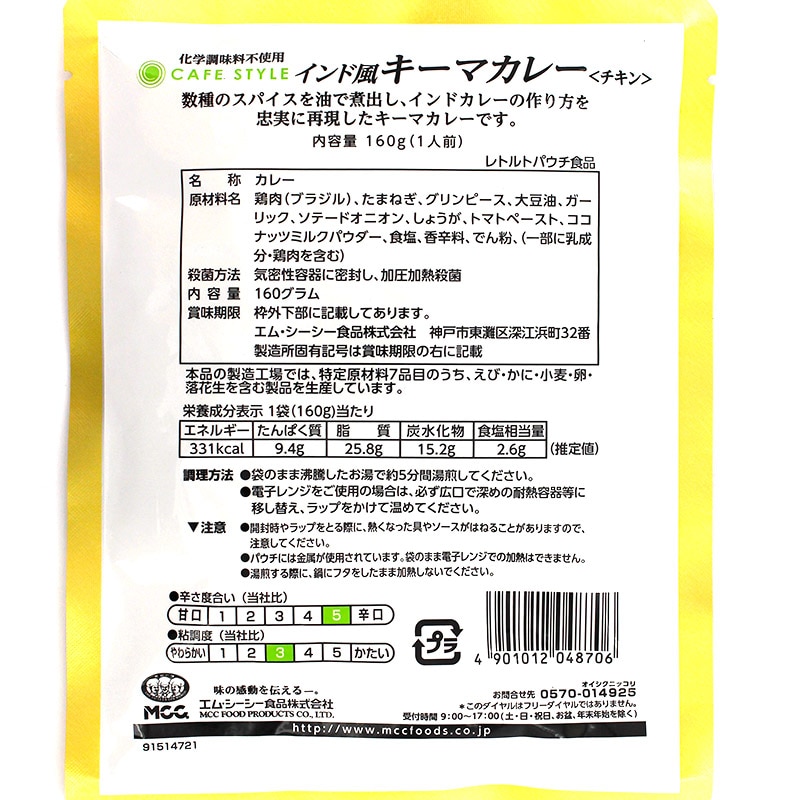 [セット] MCC CAFE STYLE インド風キーマカレー(チキン) 160g×10袋セット エムシーシー カフェスタイル 業務用レトルトカレー
