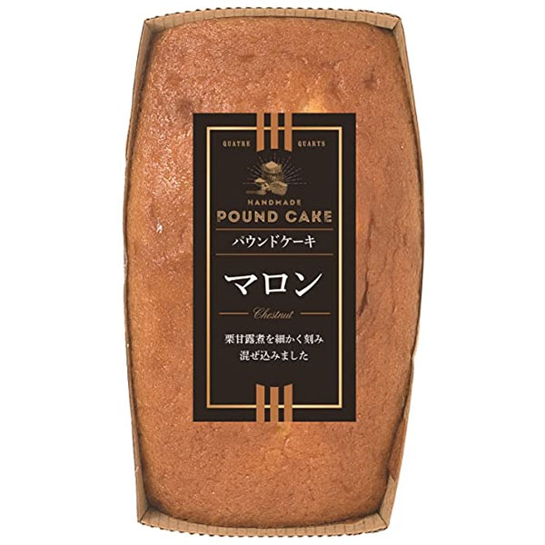 厳選した栗をから作られた栗甘露煮を、食べ易く小さくカットしてパウンドケーキ生地にたっぷり混ぜ込み、甘さをおさえてしっとりと焼き上げました。 栗の持つ独特な風味を最大限に生かし、どこか懐かしい味に仕上がりました。