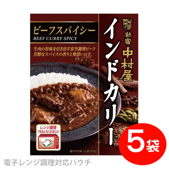 [セット] 新宿 中村屋 インドカリー ビーフスパイシー 200g×5個パック 便利な電子レンジ調理対応
